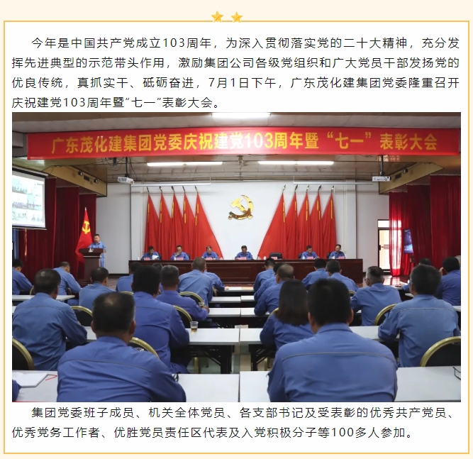 廣東茂化建集團(tuán)黨委召開慶祝中國共產(chǎn)黨成立103周年暨“七一”表彰大會