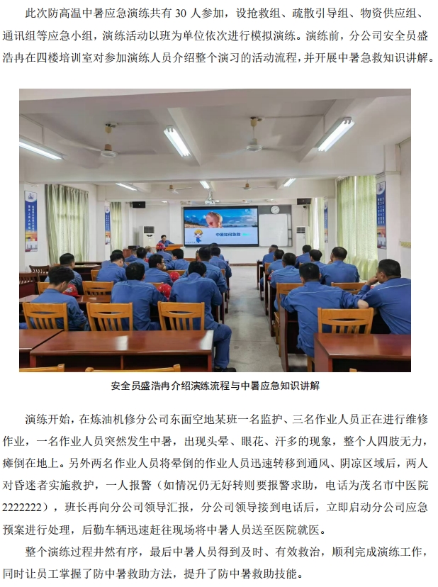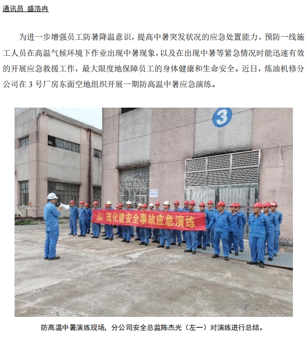 煉油機修開展防高溫中暑應急演練