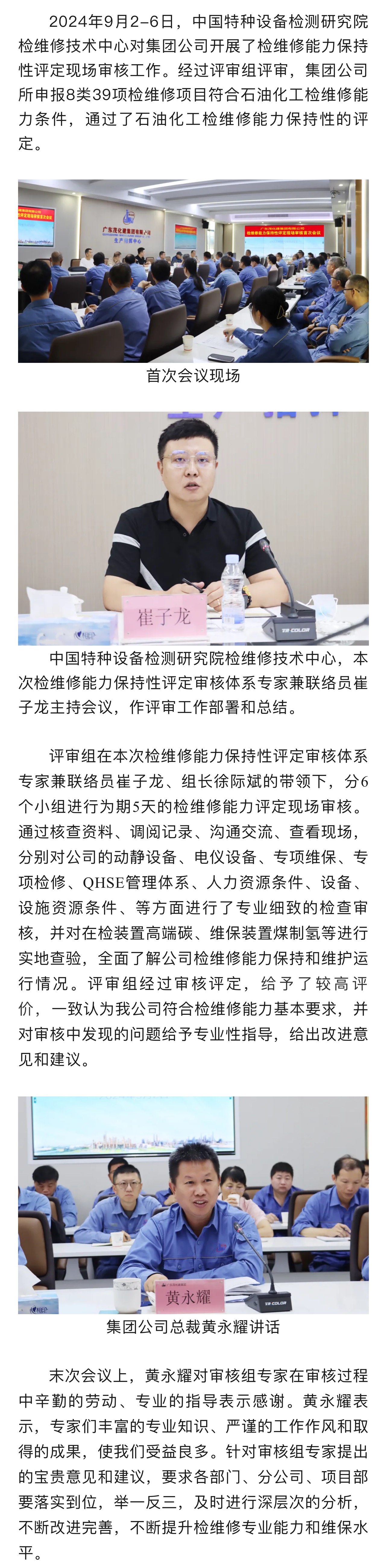 集團公司檢維修能力保持性評定現(xiàn)場審核工作圓滿完成