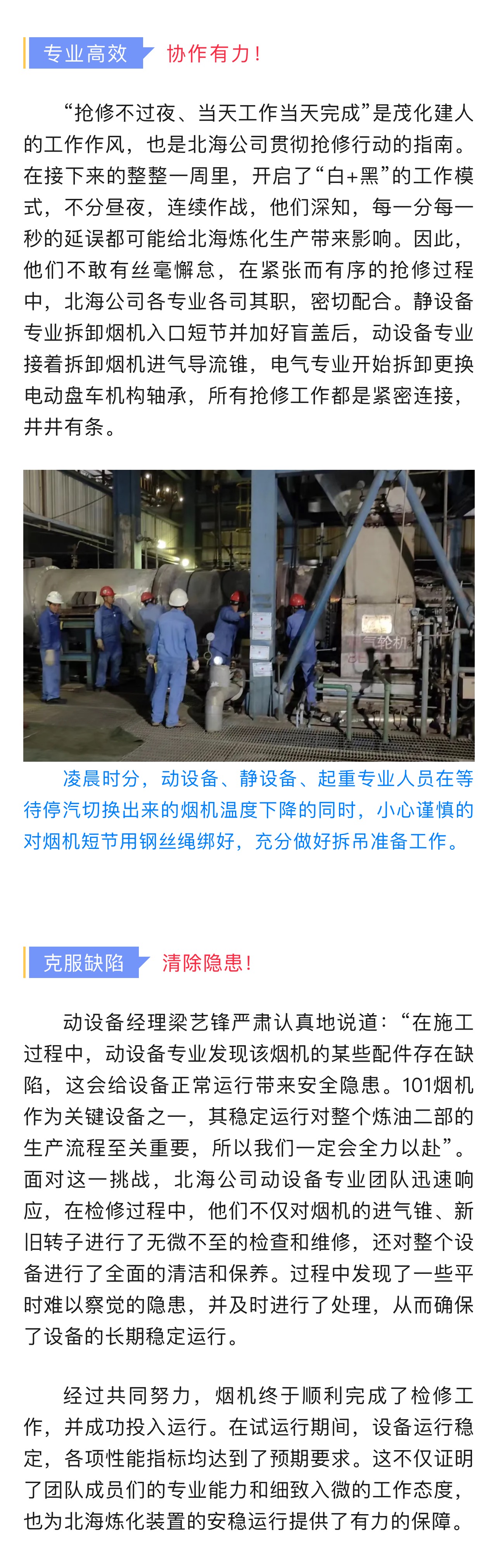 北海公司101煙機檢修紀實