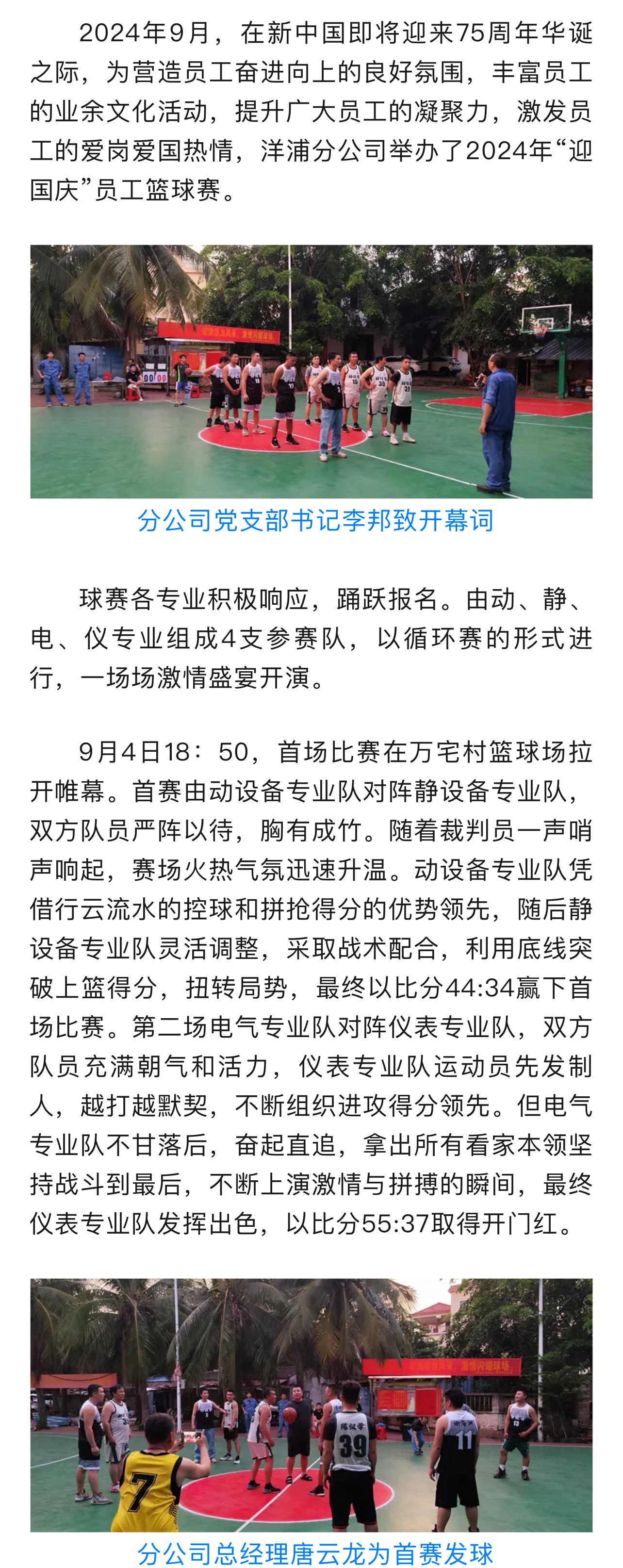 洋浦分公司員舉辦工籃球賽迎國(guó)慶