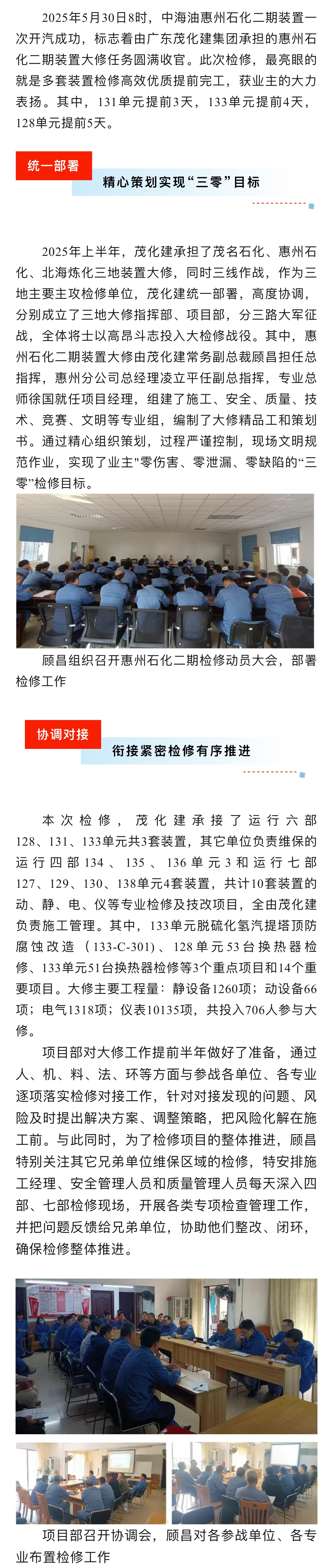 一次開汽成功 | 中海油惠州石化二期檢修圓滿收官