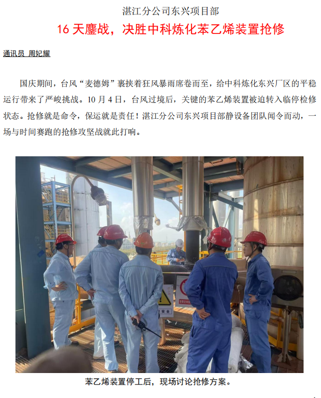 湛江分公司東興項(xiàng)目部:16 天鏖戰(zhàn),決勝中科煉化苯乙烯裝置搶修