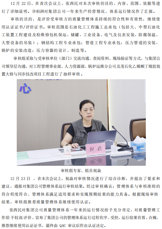 集團(tuán)公司通過(guò)質(zhì)量管理體系年度監(jiān)督審核